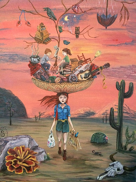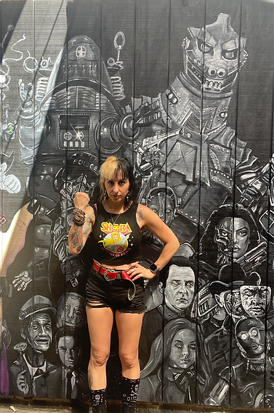 Hi, I’m Sol Luongo — a painter, muralist, and all-around maker of tactile, layered worlds. I’m an old-school, hands-on artist who loves texture, color, and a bit of chaos. My work is intricate, maximalist (at least most of the time), whimsical, and feminist, often filled with details that reveal themselves the longer you look. I usually paint in acrylics and oils, but I come most alive on big walls — murals are my playground. Please wander through my site (once it’s live!) and explore my paintings and murals. You’ll find original works for sale, and I’m available for commissions — whether you’re looking for a custom piece or a design for your space. I’m based in Los Angeles, raised in Uruguay, and have painted murals across the U.S. and Europe. When I’m not painting, I make noise in a few bands — The Vigils and Turning Violet — and I DJ under the name DJ Dark Dork. Most of the times DJ Ataxia is by my side. You can catch us at our weekly Happy Hour: